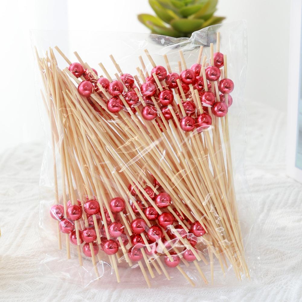 100pcs 12cm Length Bamboo Food Picks Versatile Disposable Pearl Fruit Picks Snack Fork Skewer Toothpick Skewer Cake Dessert