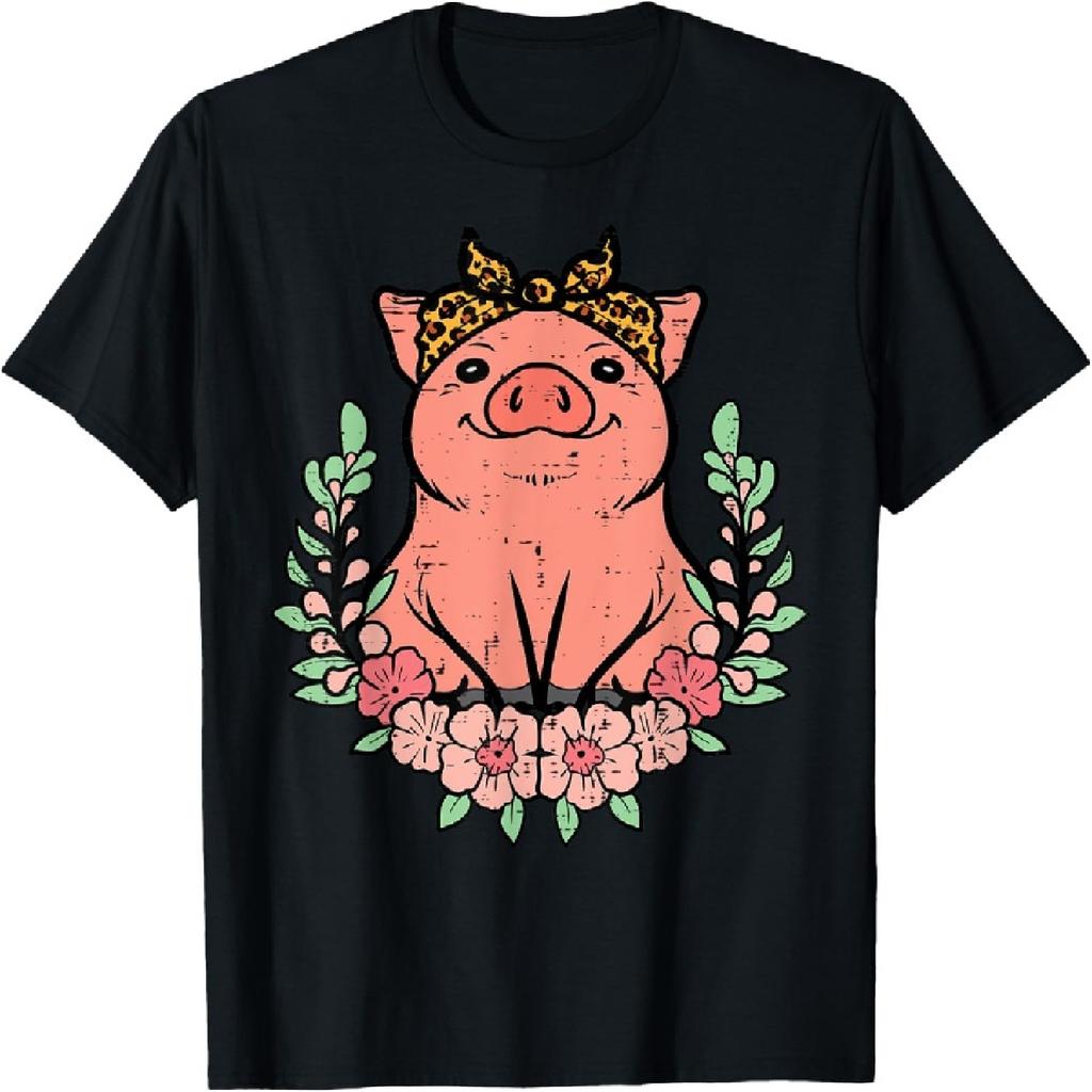 Pig Leopard Bandana Hog Farm Animal Mom Women Girls Kids T-Shirt
