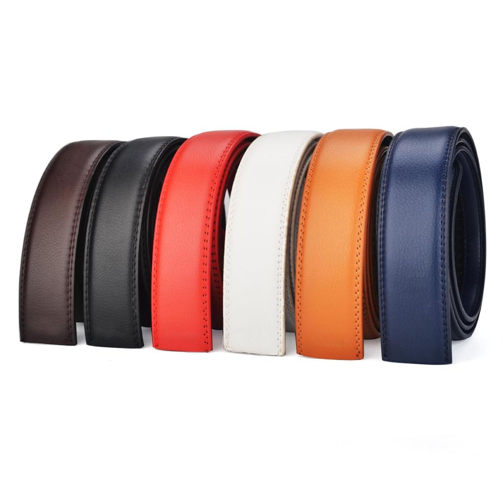 Pánský pásek z pravé kůže, druhá vrstva hověziny, šířka 3,5 cm, bezhlavá automatická přezka, červená/bílá/oranžová.
