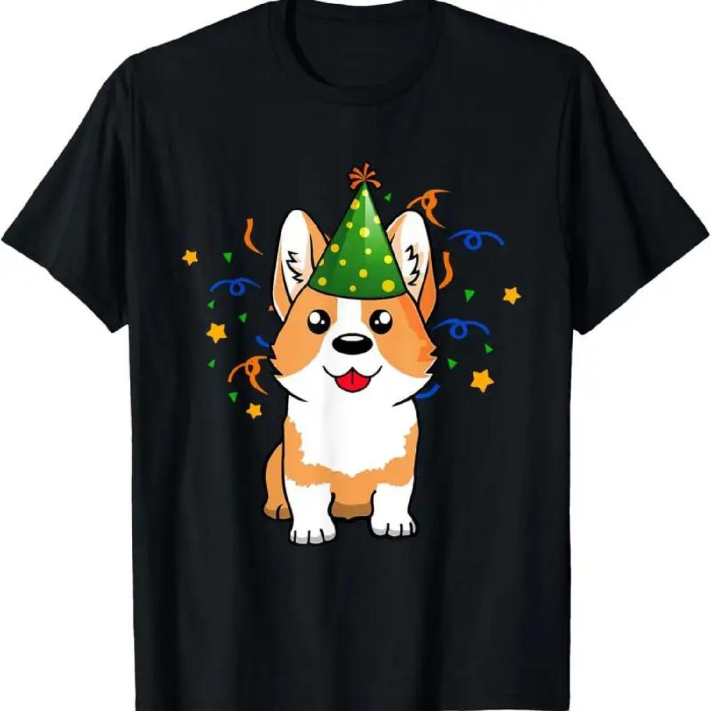 Cute Corgi Puppy Dog Birthday party celebration T Shirt