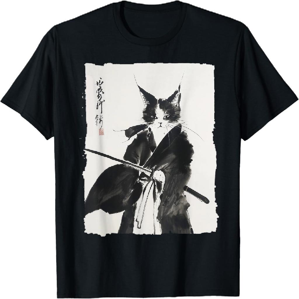 Samurajská kočka Vintage Ukiyo-e Válečné umění Grafické umění kočky Tričko(1)