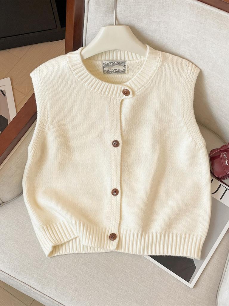 French White Layered Vest Cardigan Sweater Women Fall Winter Slim Fit Loose Knit Sleeveless Open Front Top