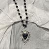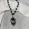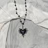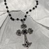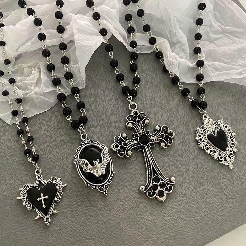 Gothic Bat Cross Pendant Necklace Women's Retro Y2K Heart-shaped Black Bead Necklace Sweater Chain