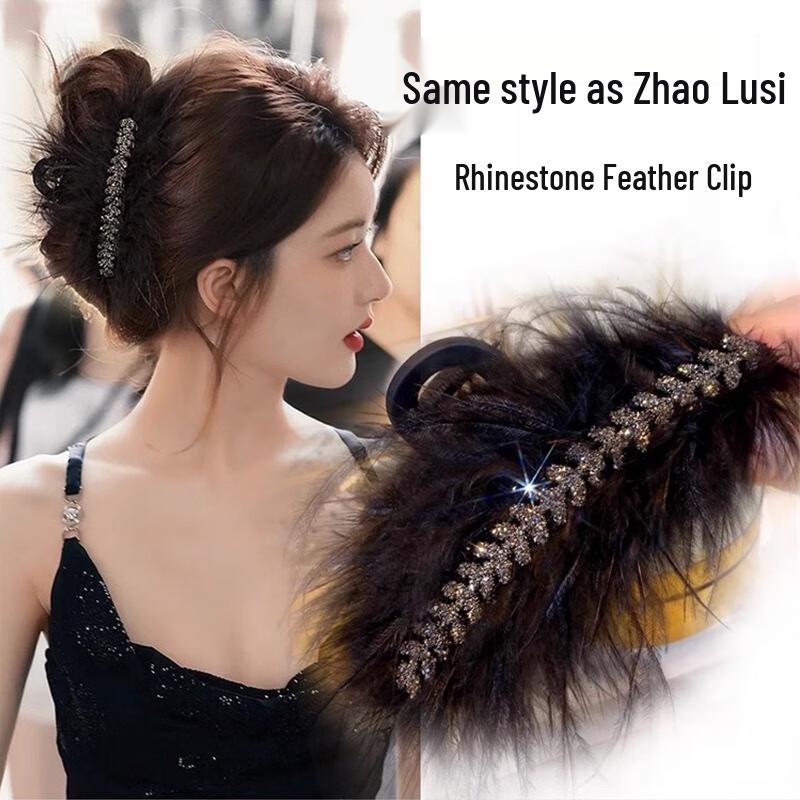 Fumede Women's Ostrich Feather Hair Claw Clip Set
