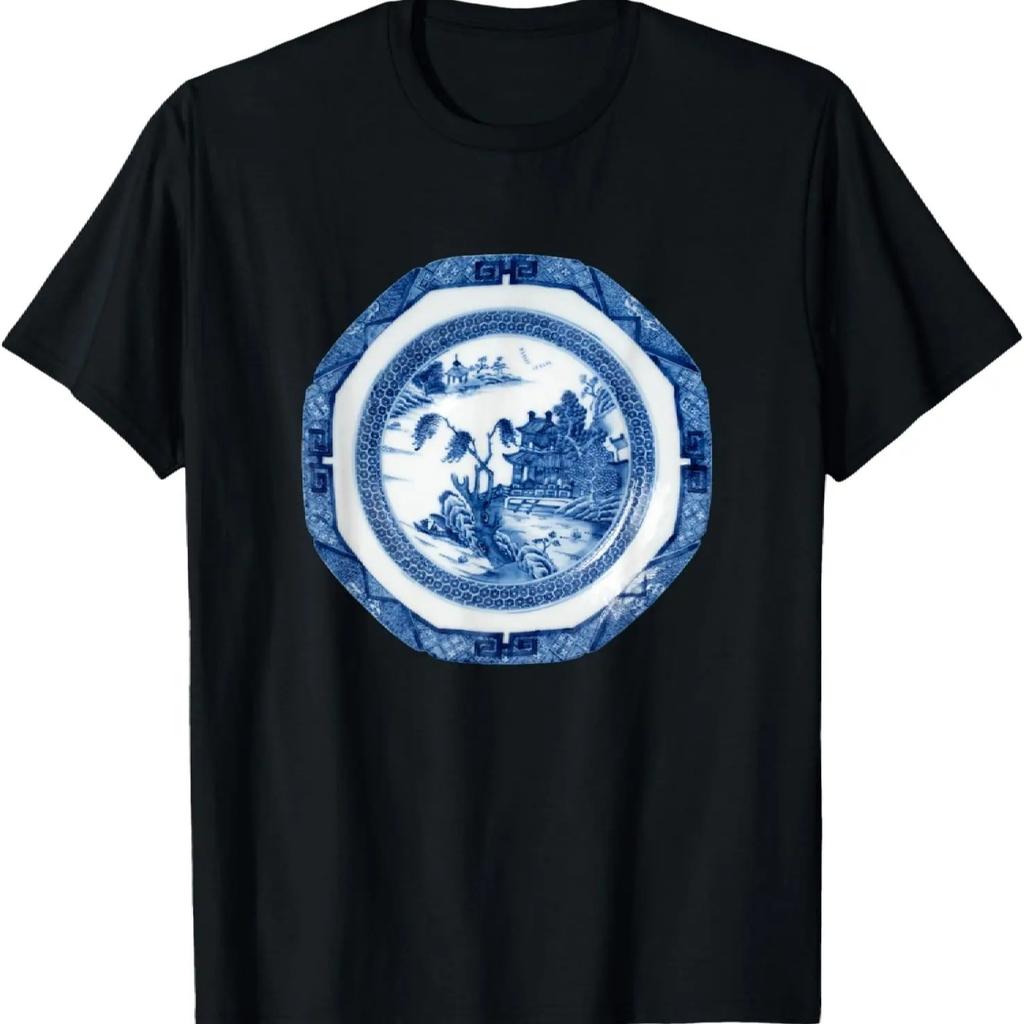 Čínské Qianlong Modrobílé Vzor Vrbového proutí Orientální Design Tričko
