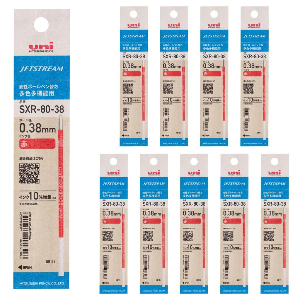 Mitsubishi Pencil Jetstream Ballpoint Pen Multicolor Refills, Multifunction, 0.38mm, Red, 10-Pack, SXR8038K.15