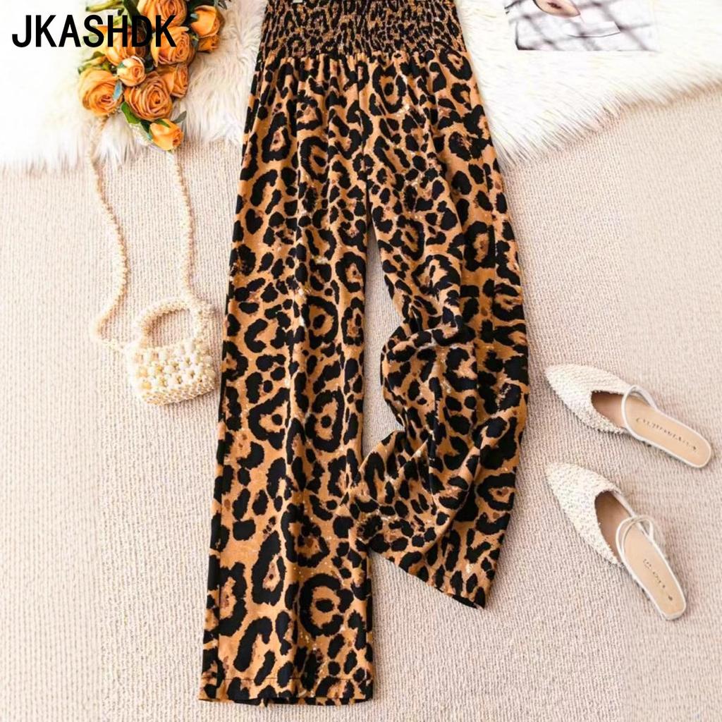JKASHDK Dámské módní ležérní kalhoty s leopardím potiskem a vysokým pasem, kalhoty a capri