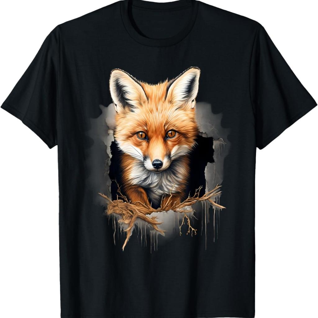 Fox Wall Wildlife Animal Print Forest Motif Drawing Nature T-Shirt