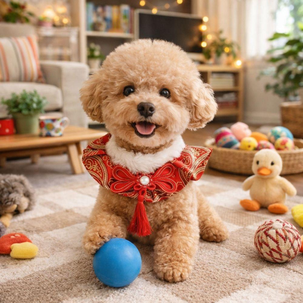 Adorable Chinese Style Pet Cat Scarf Cute Adjustable Length Pet Saliva Towel Warm Blessing Cat Tie Photo Props