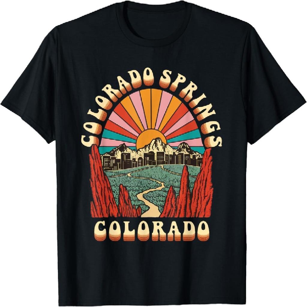 Vintage Colorado Springs Sunset Mountains Cityscape Retro T-Shirt