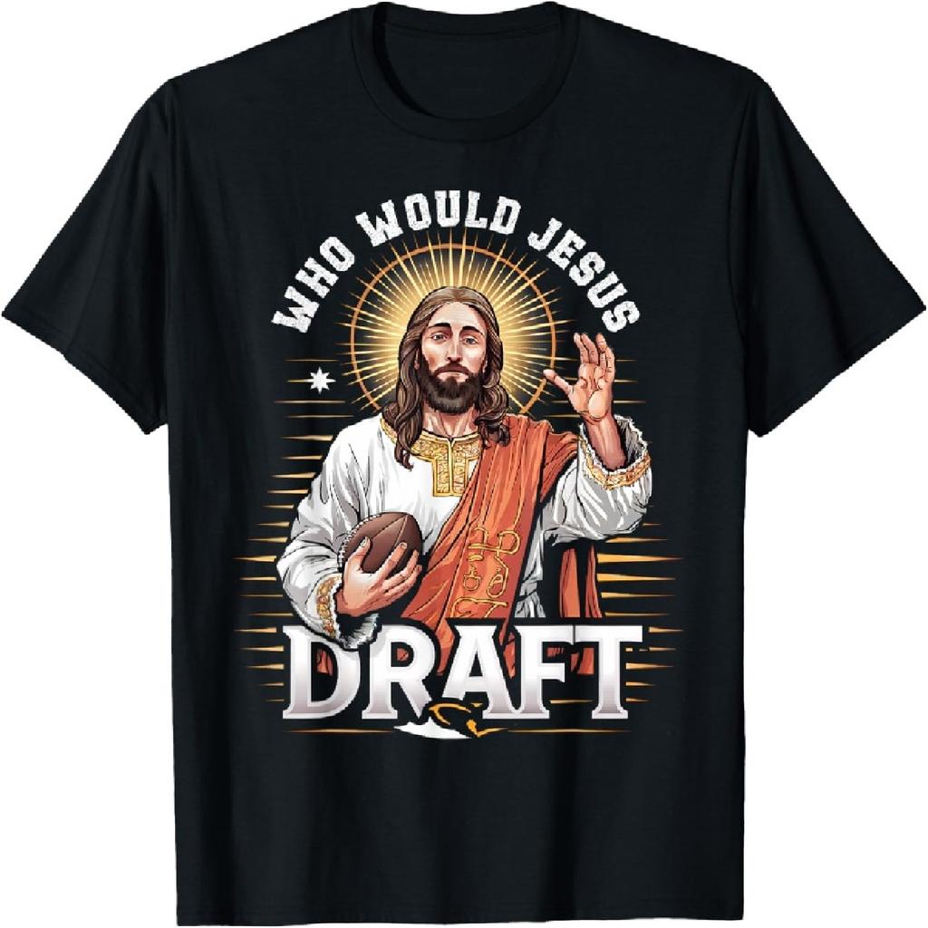 Who Would Jesus Draft Fantasy Football Fan Christian Draft T-Shirt