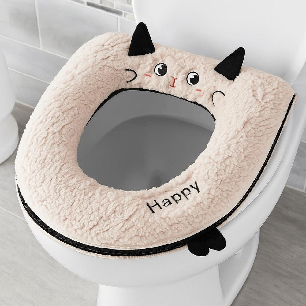 Cartoon Thickened Universal Toilet Mat Warm Removable Zipper Toilet Cover Washable Soft Toilet Seat Cushion Bathroom Use