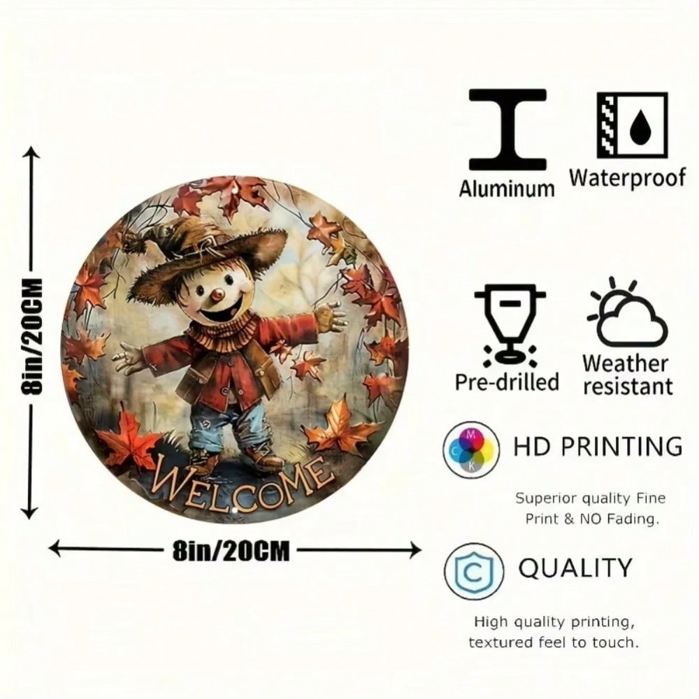 Metal Wall Art 8 Inch Round Scarecrow Welcome Sign Fantasy Decor For Garden Living Room Indoor Outdoor