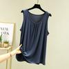 Women's Summer Loose-Fit Pleated Sleeveless Tank Top Solid Color Simple Slimming Lightweight Vest