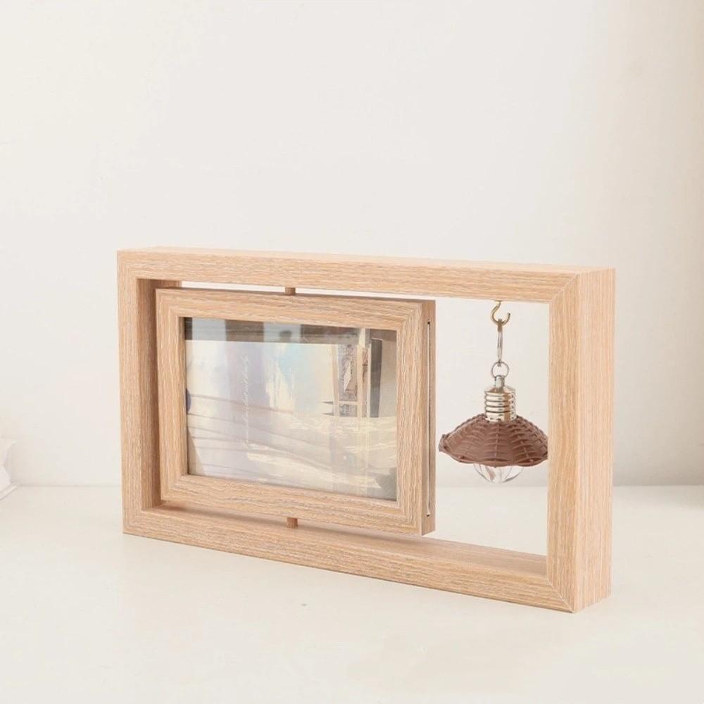 Double-Sided Wooden Picture Frame Square Rotate Commemorative Photo Frame Creative Hollow Decorative Frame Living Room