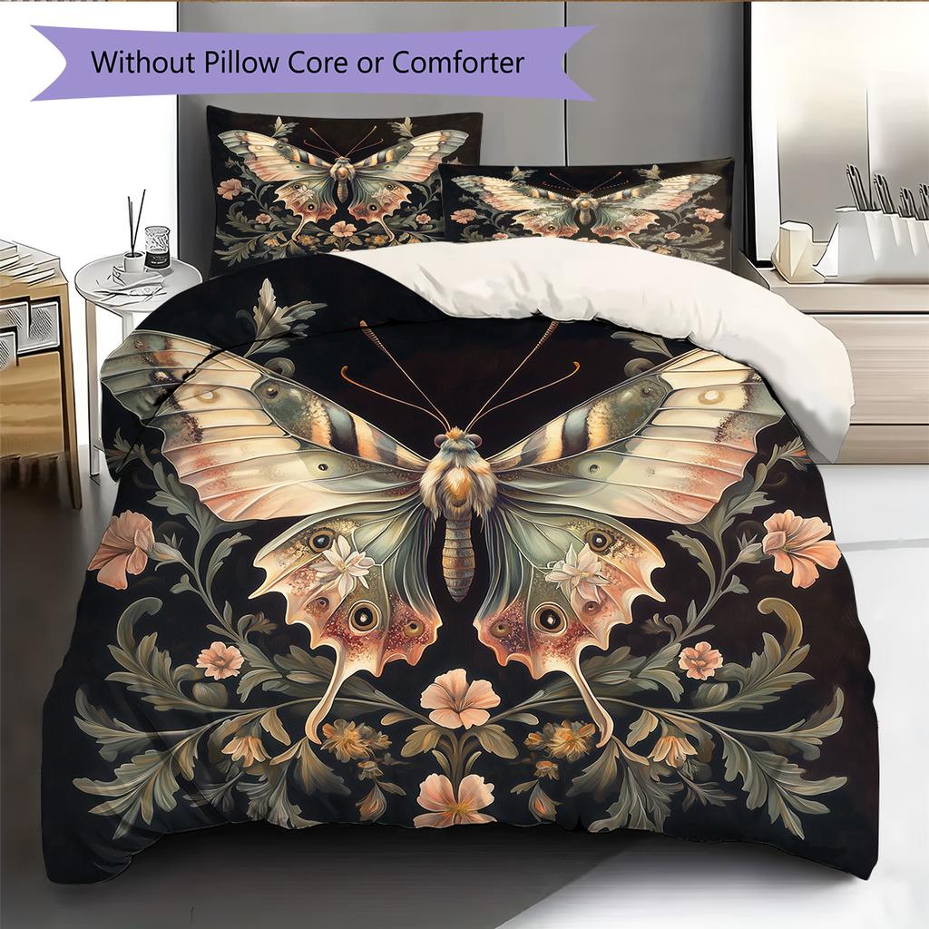 Butterfly in Flower Bushes Pattern Bedding Quilt Set Quilt Cover Pillowcase Home Decoration Gift (1 * duvet cover + 2 * pillowcase, without core)