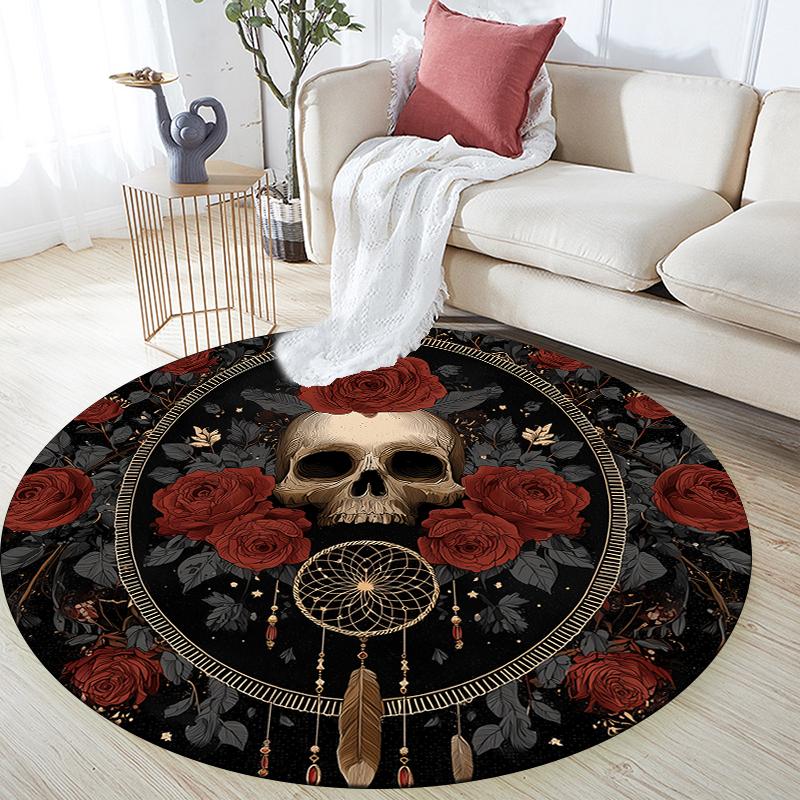 Skull and Rose pattern round rug,Carpet Rug for Living Room Bedroom Sofa Playroom Decor,Non-slip Floor Mat,Holiday Gifts and Birthday Gifts