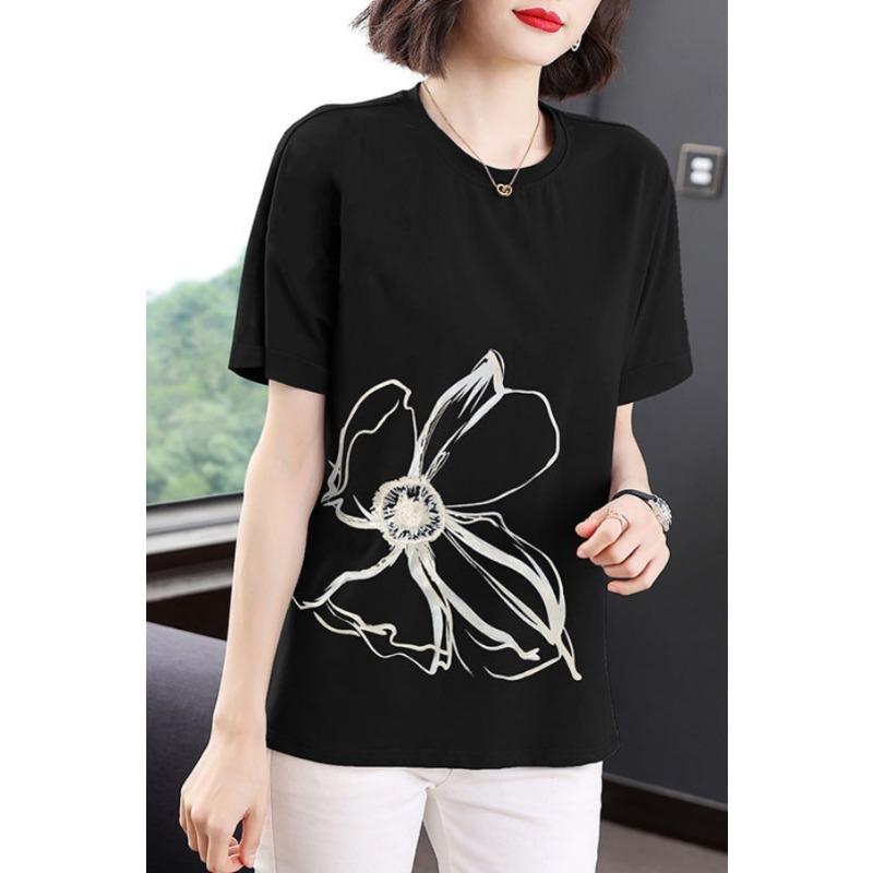 Fashionable Round Neck Modified Loose Casual T-shirt for Women Korean Style Versatile Printed Cool and Comfortable Pullover Top