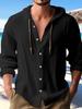 Men's Fashion Open-Front Button Hooded Shirt | Solid Color Casual Long-Sleeve Top