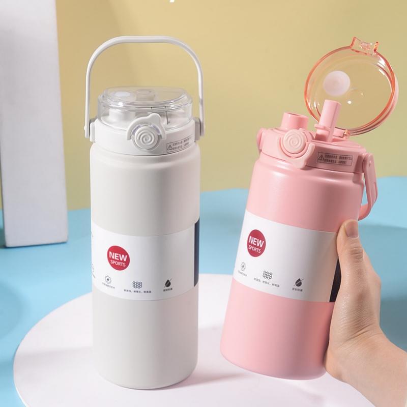 1000ML Stainless Steel Insulated Tumbler Large Capacity with Handle, Ice-Keeping and Thermal Straw, Portable Sports Water Bottle