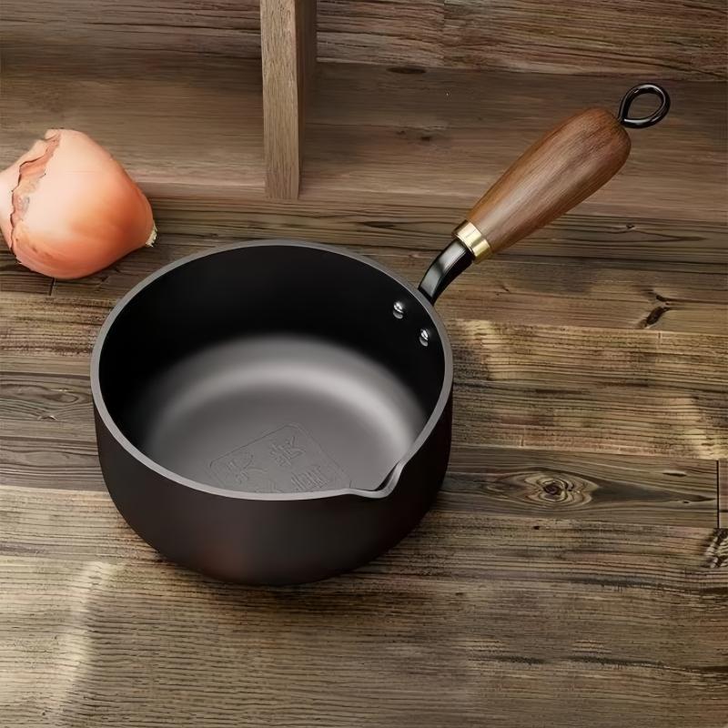 Wooden Handle Soup Pot Induction Stovetop Compatible Milk Pot for Whipped Cream, Boiling Water, and Soup Making Kitchen Cookware