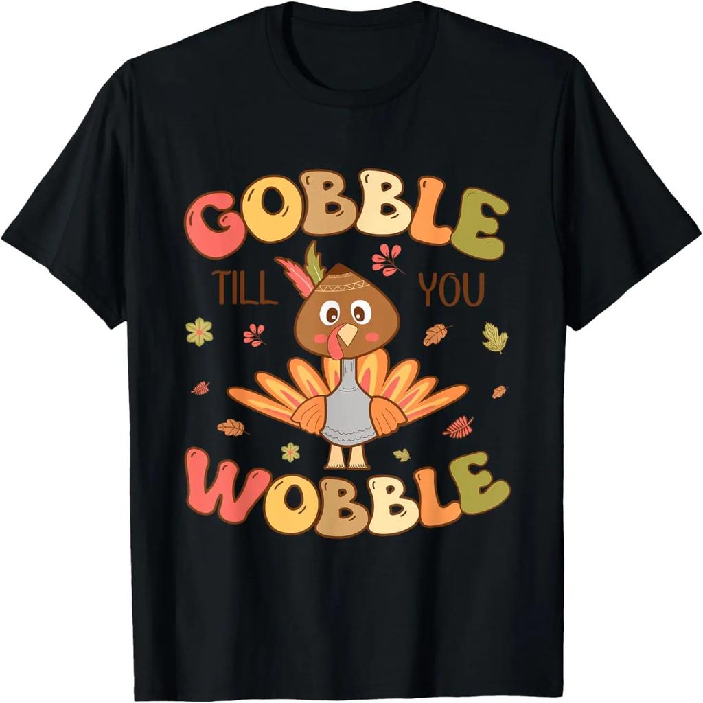 Gobble till you Wobble Kids Outfit Toddler Thanksgiving Tee T-Shirt