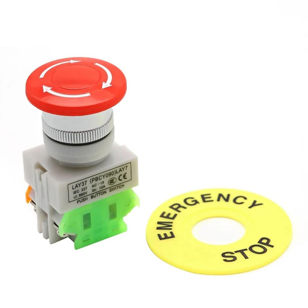 22mm Emergency Stop Switch Push Button 660V 10A Red Sign Mushroom Emergency Stop Switch Dustproof Waterproof for Industry
