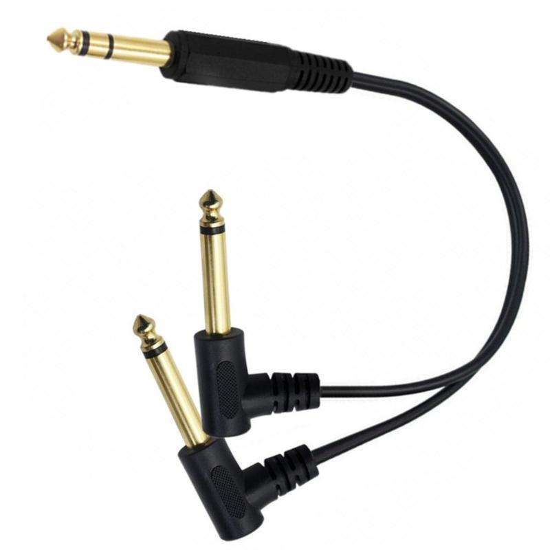 6.35mm TRS Stereo To 2Mono Male Audios Cable 6.35mm Sound Splitter Wire Gold Covered Right Angle Ends For Studio Gear