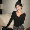 Lace Bottoming Shirt for Women in Autumn Winter New Style Long-sleeved T-shirt Pure Desire V-neck