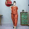 Size: 4XL, Bust: 124 cm, Waist: 104 cm, Hips: 128 cm, Sleeve Length: 22 cm, Shoulder Width: 49 cm, Length: 74 cm, pants length: 102cm