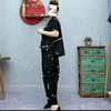 Size: L, Bust: 108 cm, Waist: 88 cm, Hips: 112 cm, Sleeve Length: 18 cm, Shoulder Width: 45 cm, Length: 66 cm, pants length: 94cm