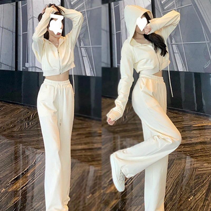 Casual Sportswear Set for Women - Autumn Style, Short Length, Hooded Pullover, High-waisted Wide-leg Pants - Two-piece Set for Women