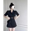 Suit for Women Summer Loose Short Blazer High Waist Slit Pants Skirt Two Piece Set