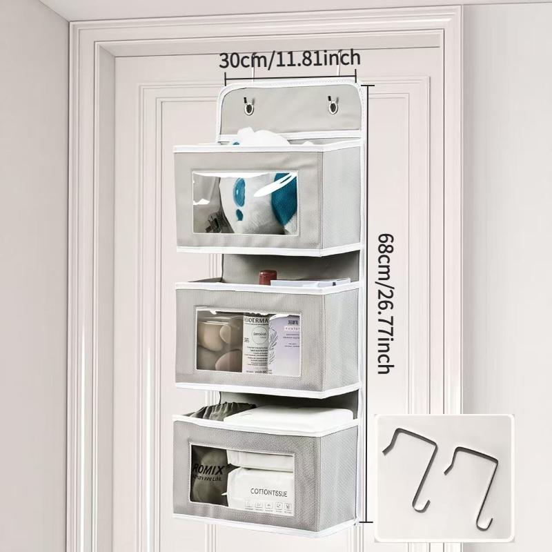 3-Shelf Hanging Storage Organizer - Behind Door, Anti-Tilt, 3 Large Capacity Pockets, Suitable for Bedroom, Bathroom