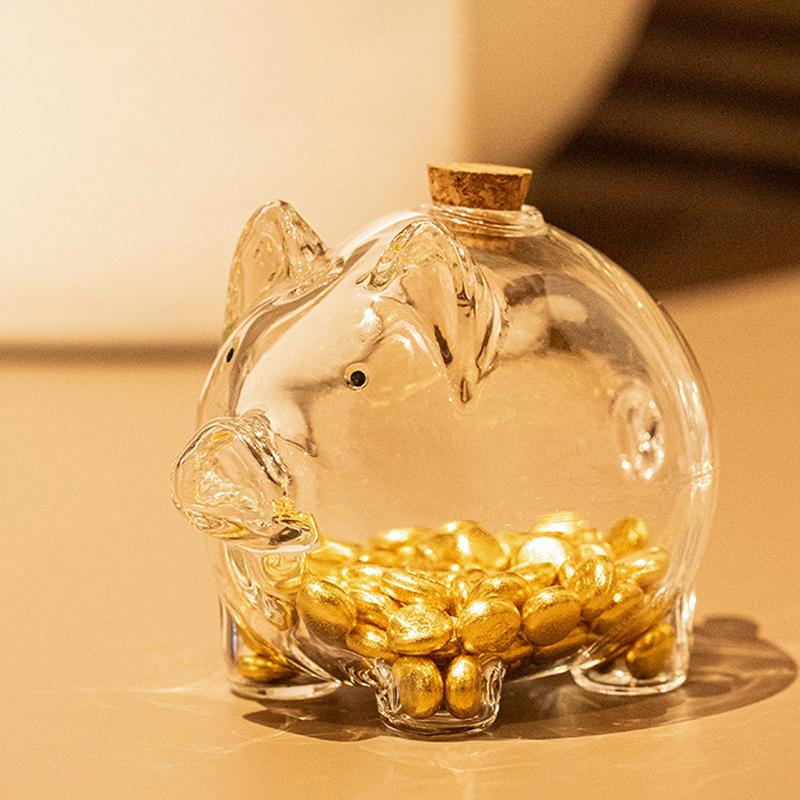 Glass Coin Bank Small Gold Bean Bank Swine Shape Decorative Saving Jar for Dressing Table Bookshelf Commemorative Coin Container