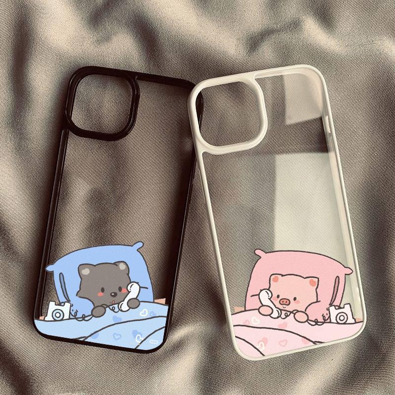 Funny Cartoon Pig Dog Couple Phone Case For iPhone 16 15 14 13 11 Pro Max 12 Mini 7 8Plus Animal Shockproof Clear Hard Cover Bag