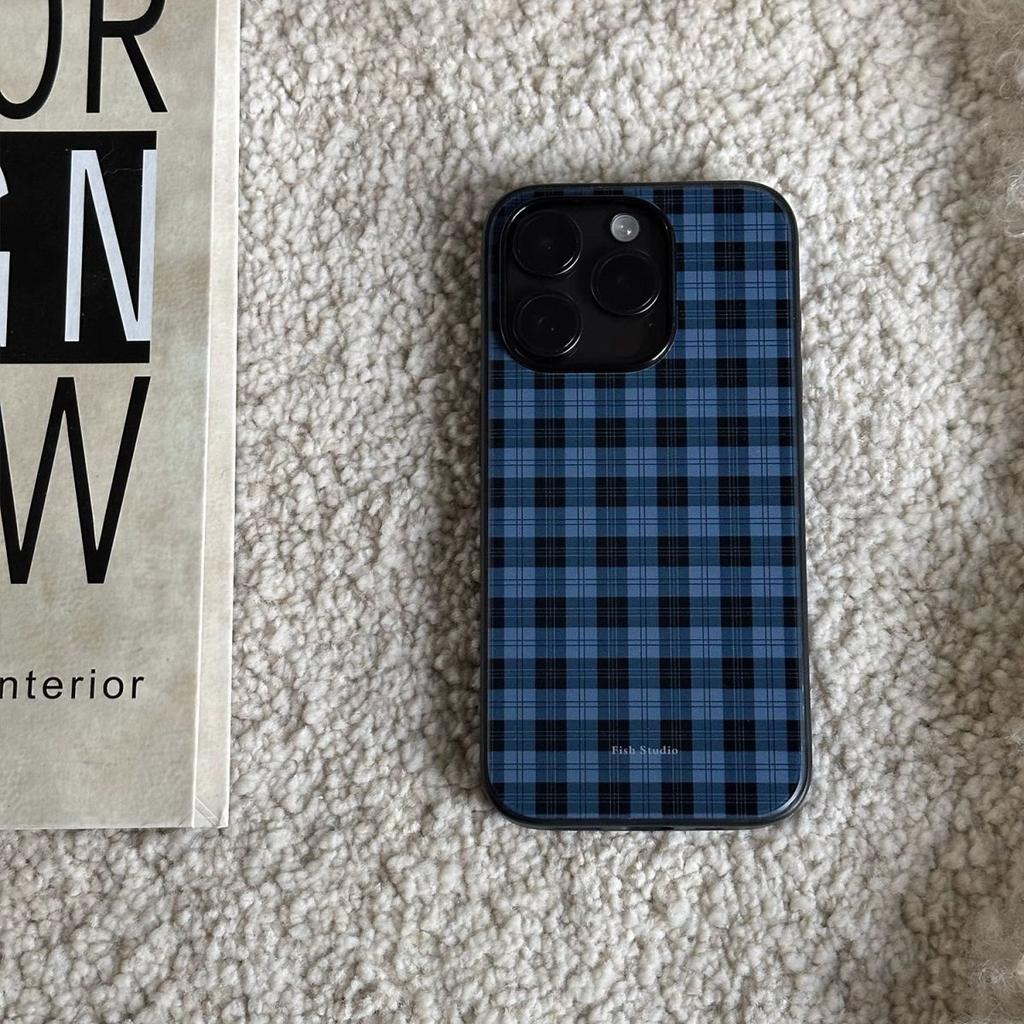 New Minimalist High-end Deep Blue Grid Phone Case For iPhone 17 Air 16 15 14 12 13 11 Pro Max Mini Plus Anti Drop Y2k Back Cover