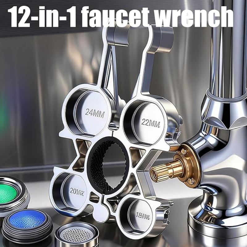 12 in 1 Faucet Aerator Wrench Tool, Multifunctional Metal Aerator Key Wrench With Ergonomic Handle for Various Plumbing Fixtures