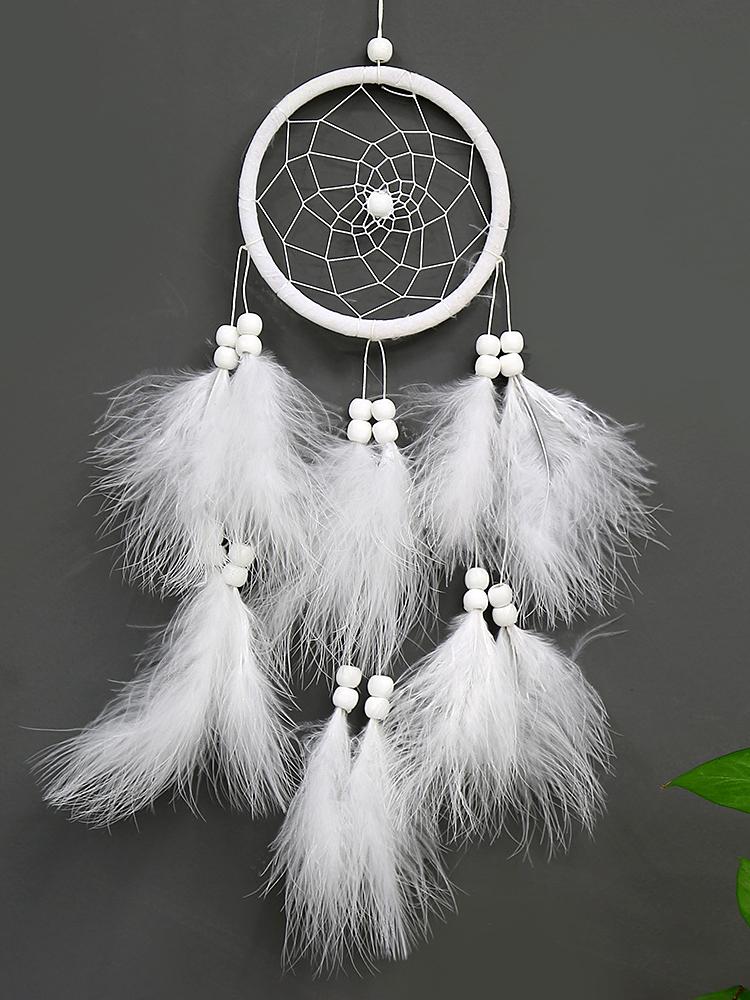 White Dream Catcher Wind Chime Creative Hand-woven Feather Car Pendant Bedroom Garden Outdoor Hanging Ornaments Home Decoration