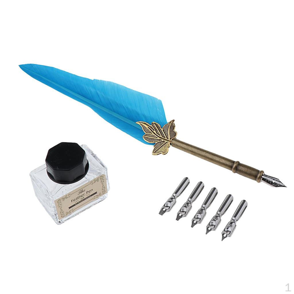 - This is a feather shape fountain pen set: metal handle and 5 changeable stainless steel nibs, luxurious but elegant, satisfy your multiple writing purpose