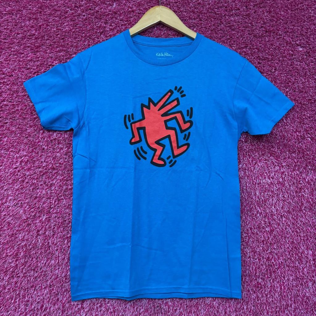 Keith Haring Dancing Dog Graphic Design Blue T-shirt