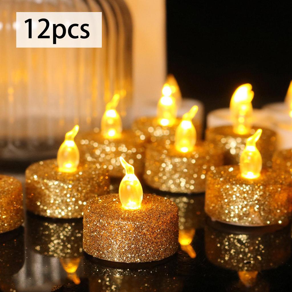 PACKAGE INCLUDES: there are 12 glitter powder LED tealights, a large number make them very suitable for indoor and outdoor holiday decorations.