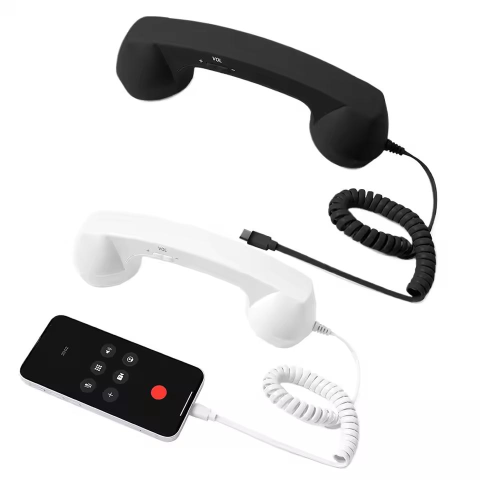 Type-C Retro Phone Handset with Microphone Classic Landline Telephone Receiver Portable Vintage Phone Headset for iPhone&Android