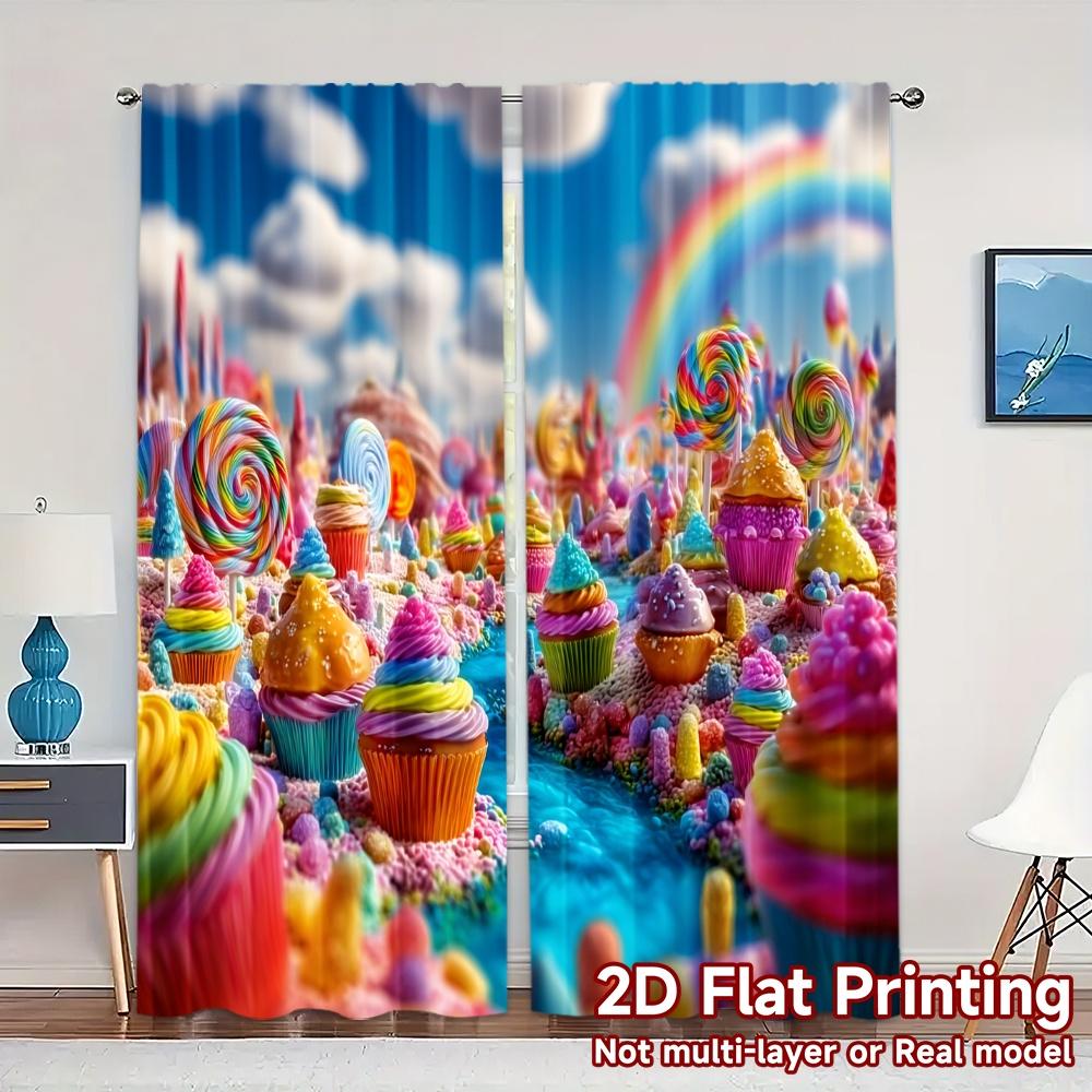 2pcs 2D FLAT PRINTING Curtains (Without Rod) Candy Paradise Modern Minimalist Curtains Versatile Polyester Curtains Thermal