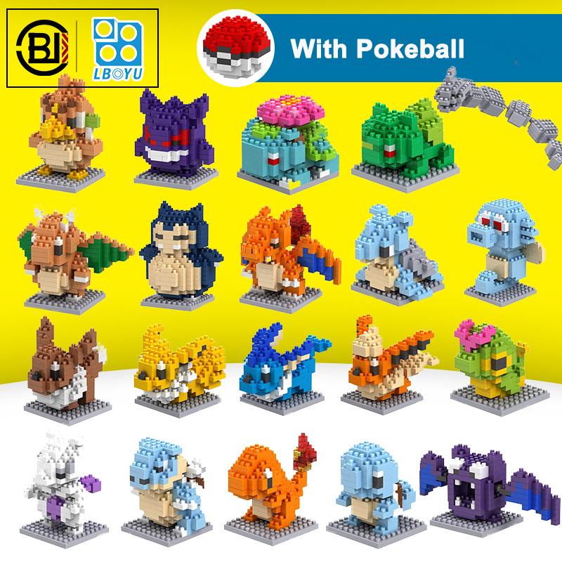 Pokemon Mikro Stavebnice Gengar Mewtwo Eevee Snorlax 3D Model Farfetch'd LBOYU Mini Cihlové Figurky Hračka S Pokéballem