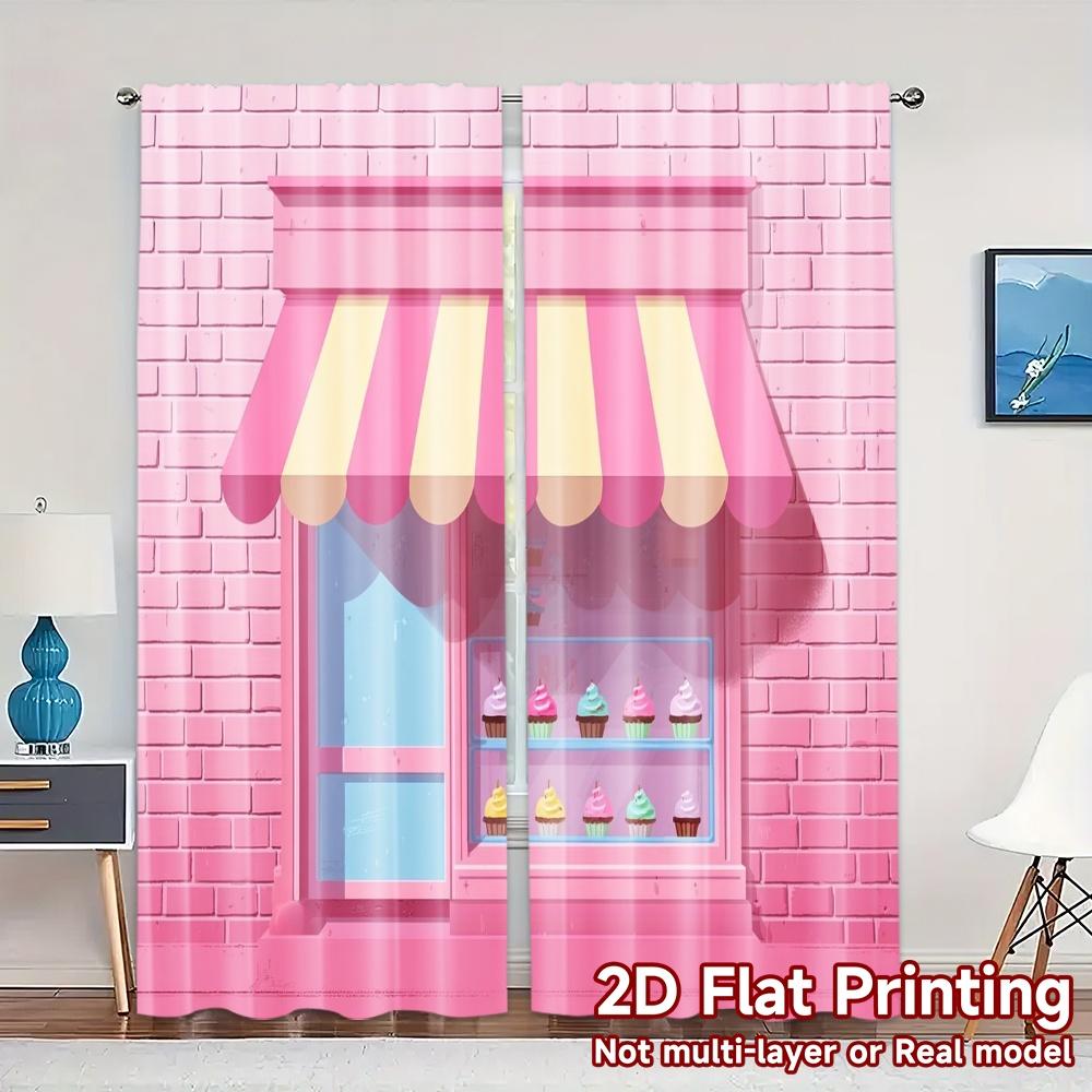 2pcs 2D FLAT PRINTING Curtains (Without Rod) CandyShopFront Creative Modern Curtains Yarn Curtains Versatile All Perfect for