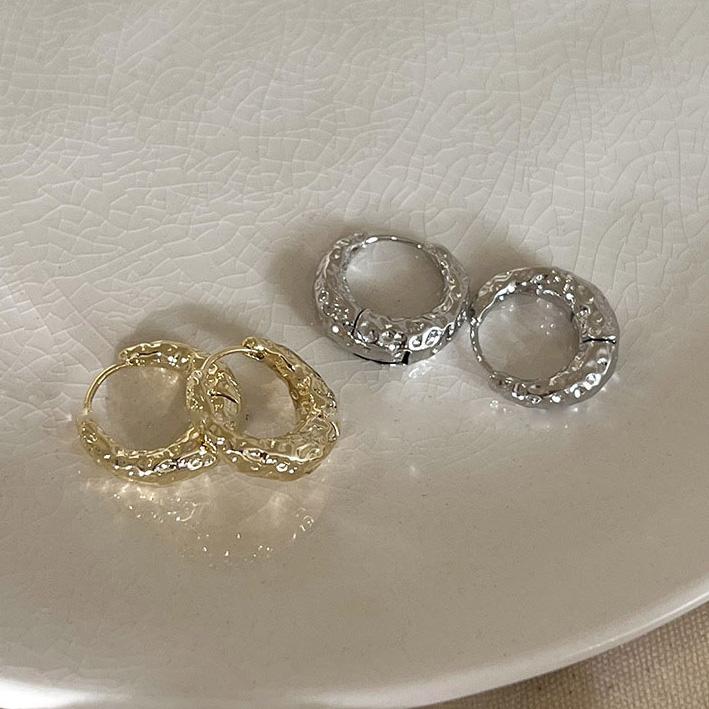 PONYKISS Sterling Silver Irregular Lava Round Hoop Earrings for Women Minimalist Trendy Fine Geometric Accessories