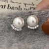 Stříbrné Perlové Zirkonové Obloukové Náušnice pro Módní Ženy Párty Klasické Jemné Minimalistické Doplňky