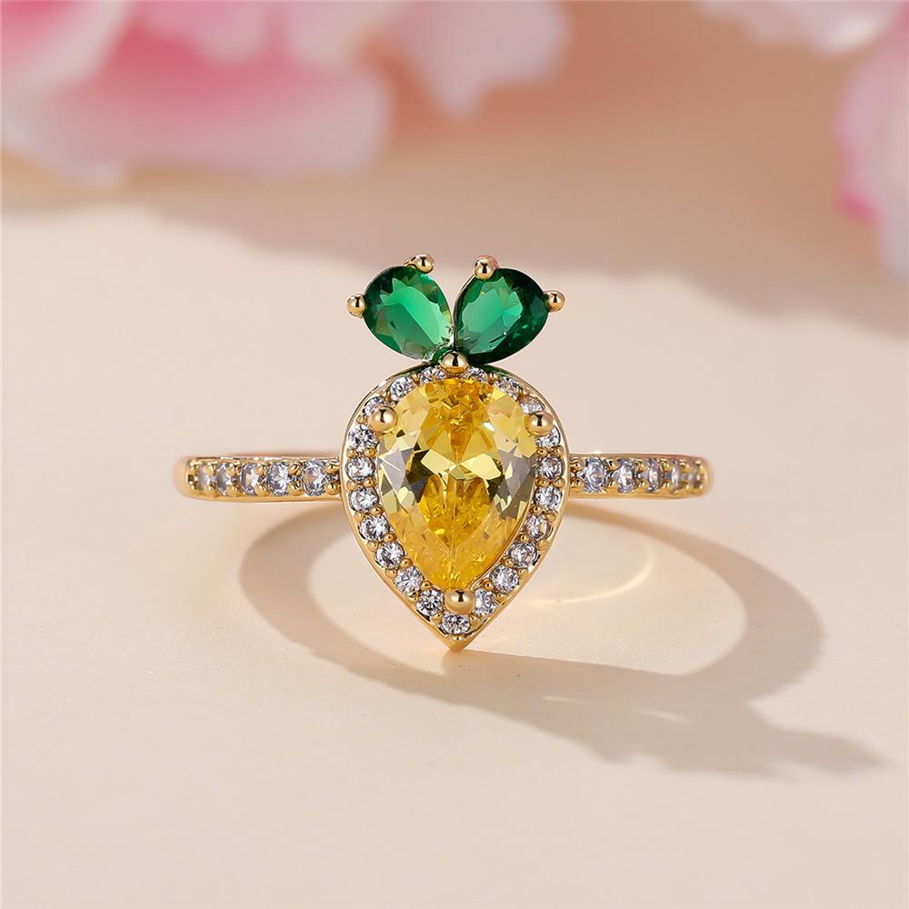 Cute Female White Yellow Green Water Drop Round Zircon Stone Ring Gold Color Novelty Gift Party Wedding For Women