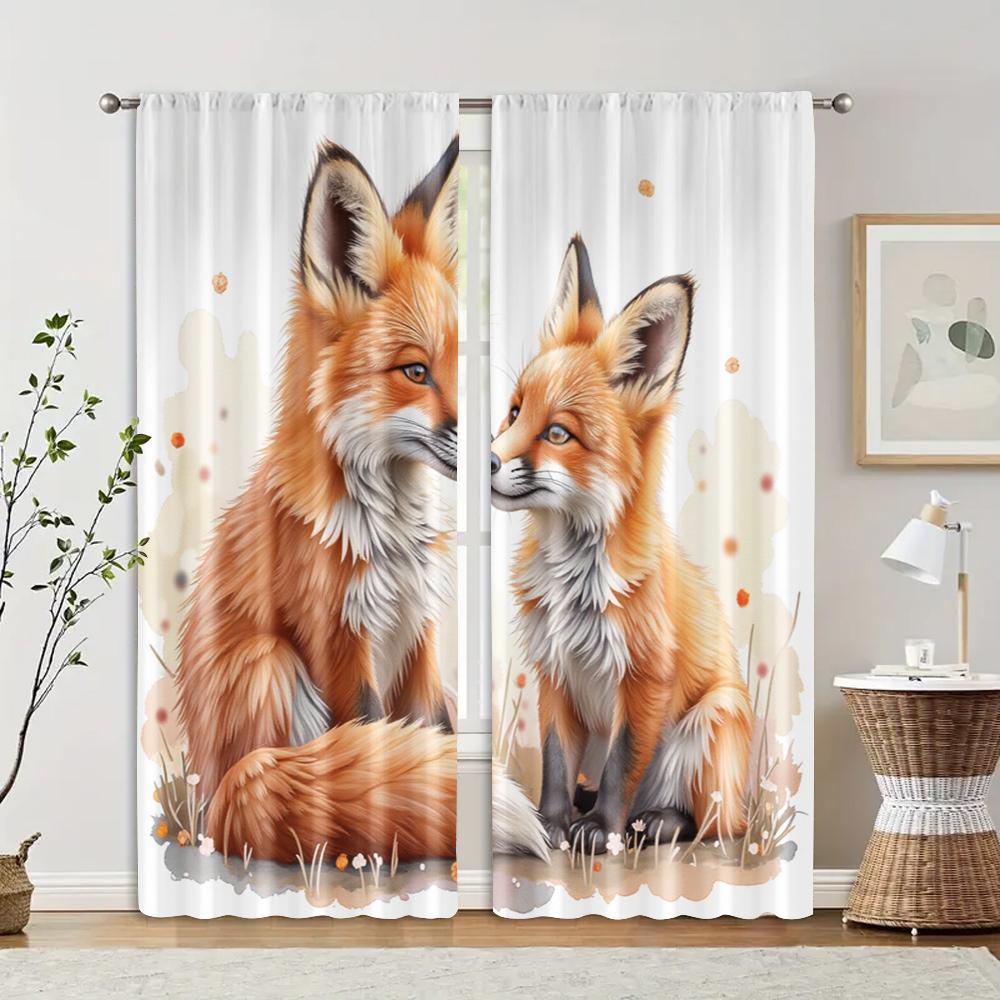 2 pcs filtering curtains (excluding rods non-movable without batteries) Mama Fox And Little Fox for use in bedrooms and